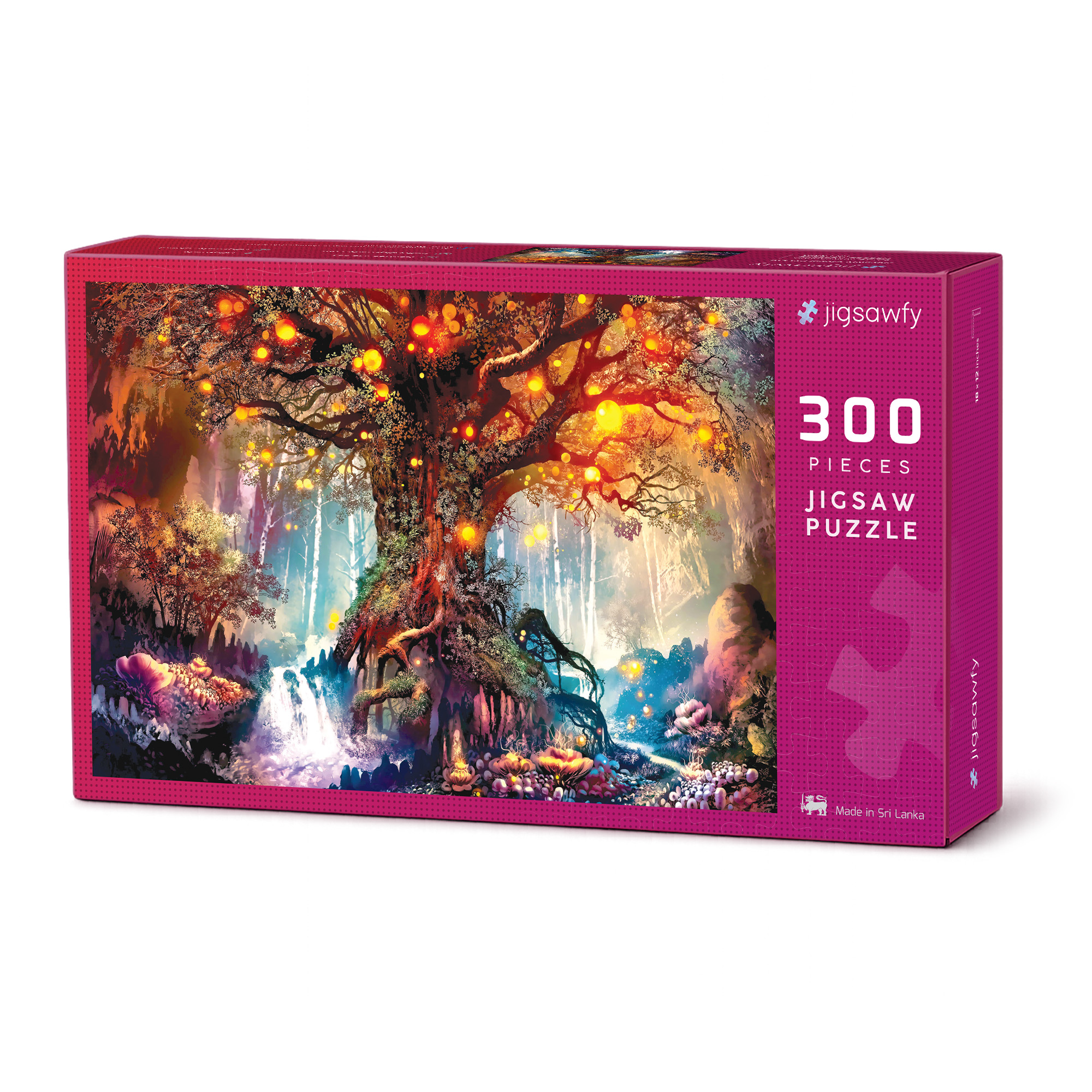 Illuminate your puzzling experience with the captivating Tree of Lights 300-piece jigsaw puzzle, featuring a stunning illustration of a glowing tree surrounded by fireflies. Expertly crafted with high-quality materials for a satisfying and durable experience.